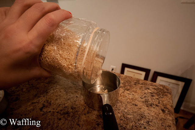 Another problem you may find when moving your dry goods to jars is measuring. Now, I always found bags of rice floppy and hard to pour, but measuring with jars can lead to this: